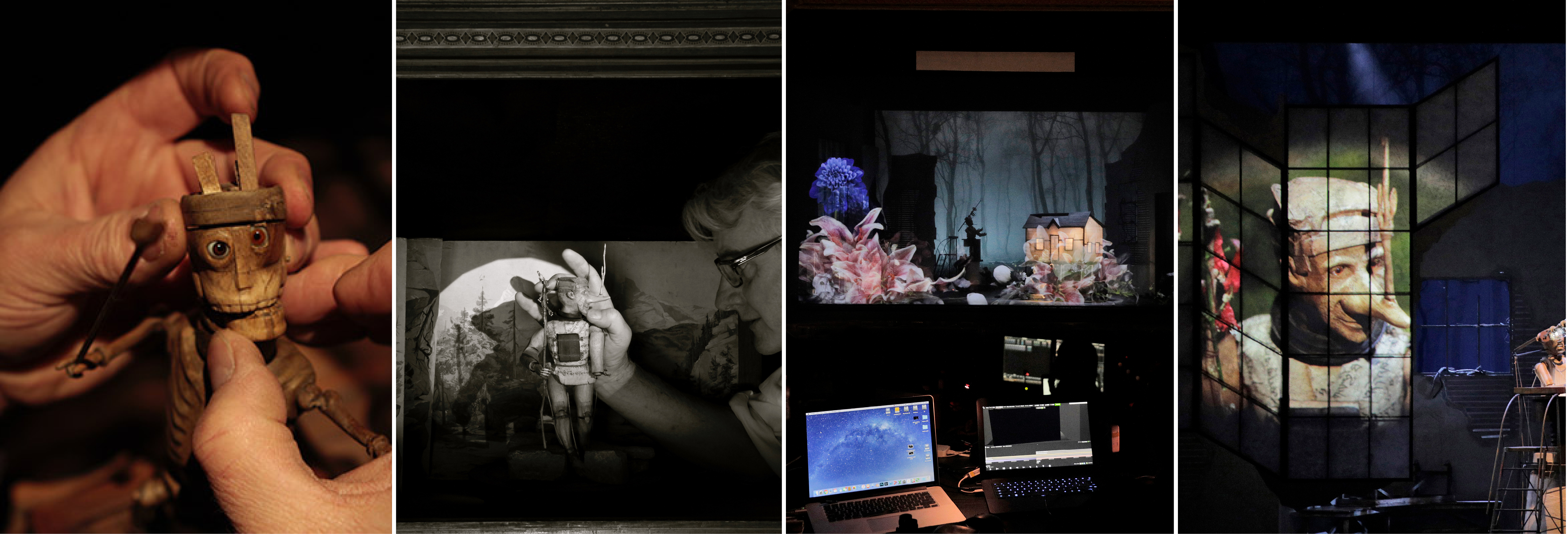 Another idea the team came up with was a way to incorporate animated shadows into the production. Frame expands on this process: “I created a new production element in my studio to be able to do that—it’s a silhouette animation table. So I can start with a skeleton that’s been projected, and I take it over and animate it. It moves across the walls, and then David Adam Moore takes over from there. He is the person who really decides how does that meld with the music, where do those movements belong, how do we fit them in such a way that they really make sense in terms of the action and the emotive content of the piece.”