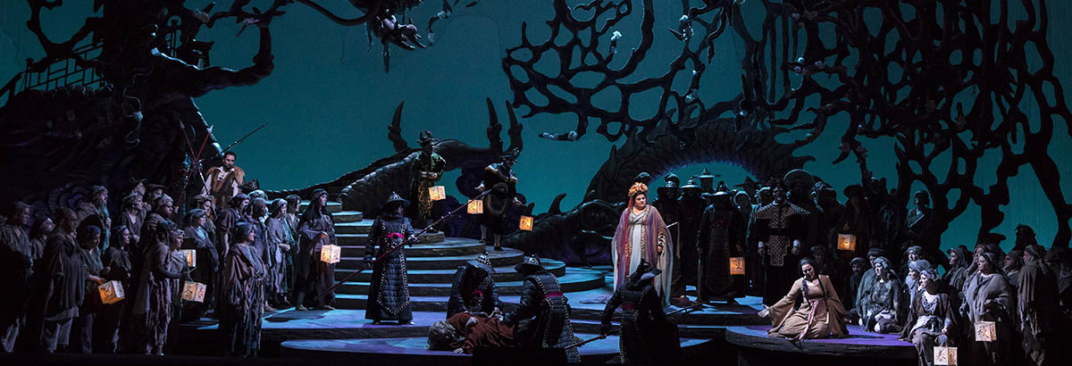 Aida is a dramatic tale of forbidden love between Aida, a captive princess, and Radamès, a valiant military commander, amidst political turmoil. As emotions are tested, each character navigates a gripping story of passion, sacrifice, and the clash of nations.