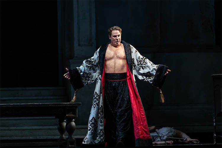 In Act 2, Giovanni jokingly invites the statue of the dead Commendatore to dine with him. In the opera’s finale, the statue takes Giovanni up on the offer. The statue has very specific after-dinner plans for Giovanni… in hell.