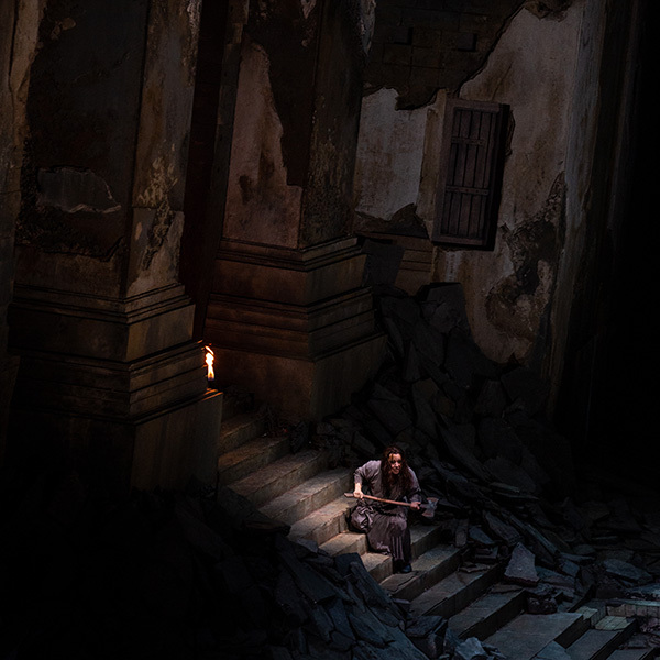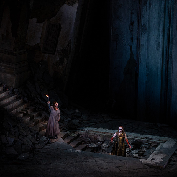 Two messengers have brought news of Orest’s death. While Elektra contemplates enacting revenge alone, she meets one of the messengers. After an exchange, Elektra recognizes that the messenger is her brother. This is a key moment of what is what is called the “Recognition Scene.”