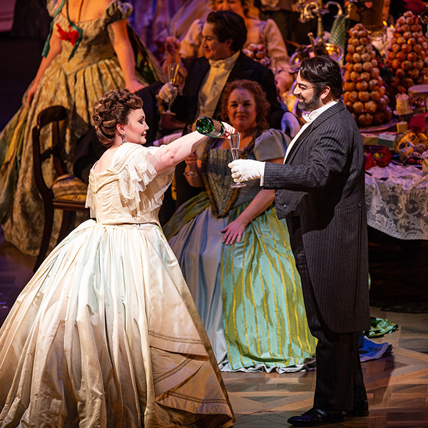 In Act 2, Violetta and Alfredo are living together in domestic bliss. Alfredo’s father, Giorgio Germont, comes to plead with Violetta, asking her to end her relationship with his son. He wears down Violetta and sings of the family life that Alfredo is missing in Provence, France.