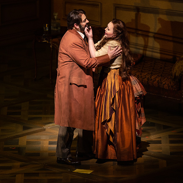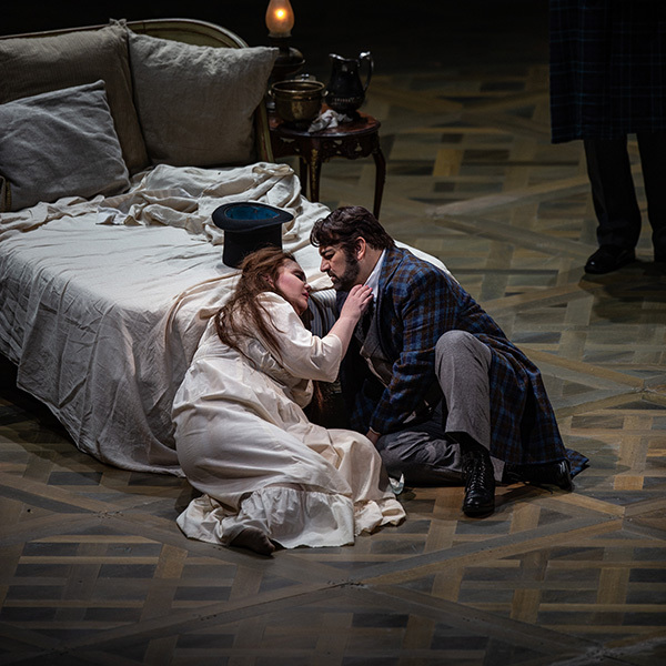 Alfredo arrives at Violetta’s bedside and desperately tries to rally her spirits. In their duet, his initial music resembles a lullaby, as he comforts her with the promise of a happy future away from the tumult of Paris. And she repeats this melody as she tries to bolster her hope.
