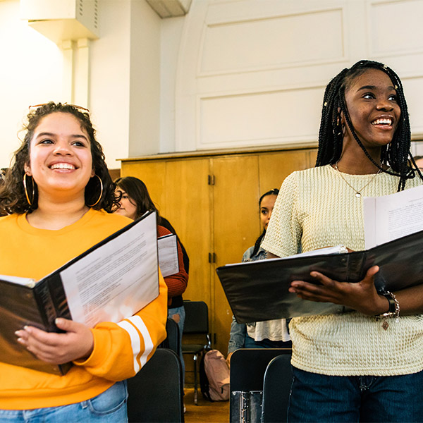 The High School Choir Residency supports vocal instruction in high school (grades 9-12) choir programs by providing regular, year-round assistance from a Lyric professional teaching artist. Teaching artists work collaboratively with choir teachers to deliver student instruction and foster student artistic growth. The program features three integrated components: