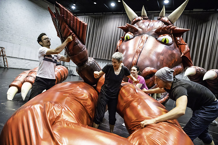 How does one differentiate the physical vocabulary of different types of beings in Lyric’s Ring? “A lot of that comes from the physicality of the singer singing the role,” says British choreographer Denni Sayers, “and working with our movement crew – a mix of acrobats, stage combat artists, puppeteers, and aerialists. Sometimes they’re doing really hard physical labor, and then they suddenly become the oppressed Nibelungen working in the mine. They adapt their movement depending on where they are in the story.”