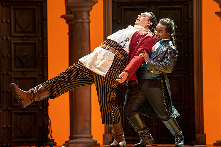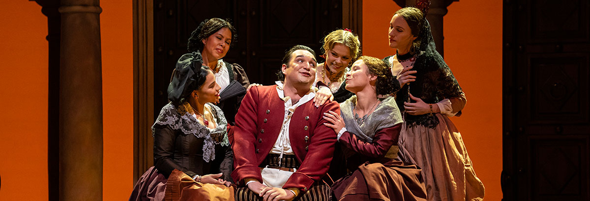 Figaro! Figaro! Figaro! This barber really knows how to make an entrance. This week, watch as the terrifically talented bass-baritone Adam Plachetka delivers a spot-on performance of one of the trickiest arias in the repertoire as Figaro in Rossini’s The Barber of Seville. Plachetka made his Lyric debut four years earlier as Figaro in Mozart’s The Marriage of Figaro, a sequel of sorts to Rossini’s Barber, with both operas based on plays in a three-part series by the French playwright Pierre Beaumarchais.