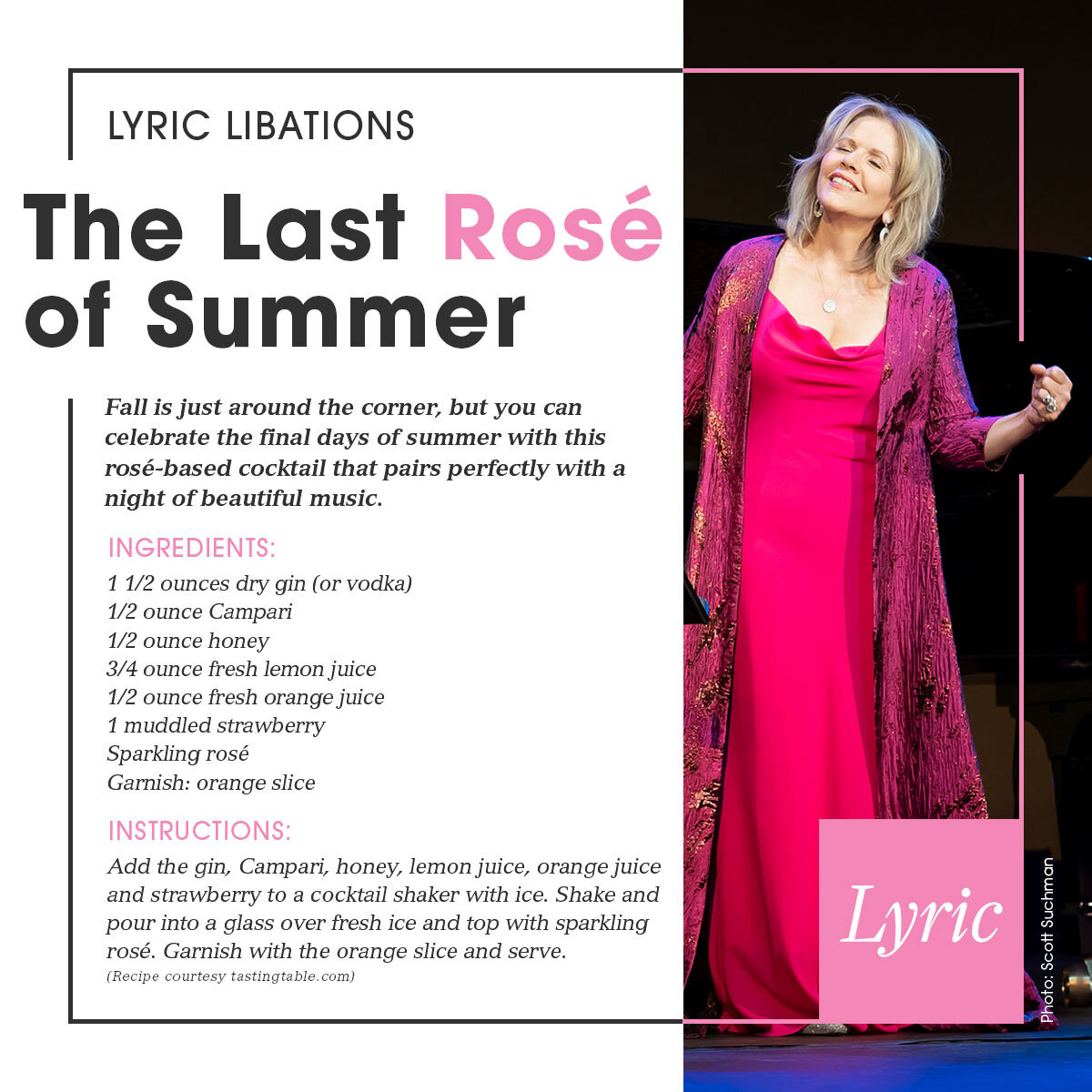 Fall is just around the corner, but you can celebrate the final days of summer with this rosé-based cocktail that pairs perfectly with a night of beautiful music.