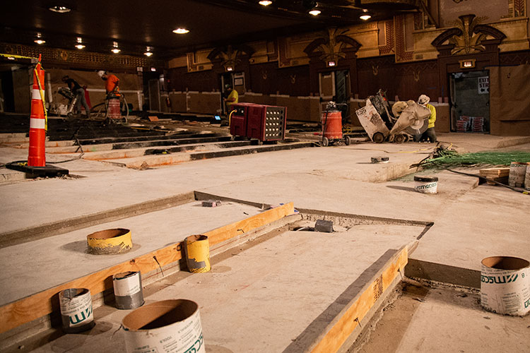 Work continues on our new seating project, and as any HGTV fan knows, even the most beautiful old homes can have their surprises and setbacks. For our house, that was finding a patch of lead paint on the Main Floor of the theater. See how our crew responded to the challenge to keep this project moving.