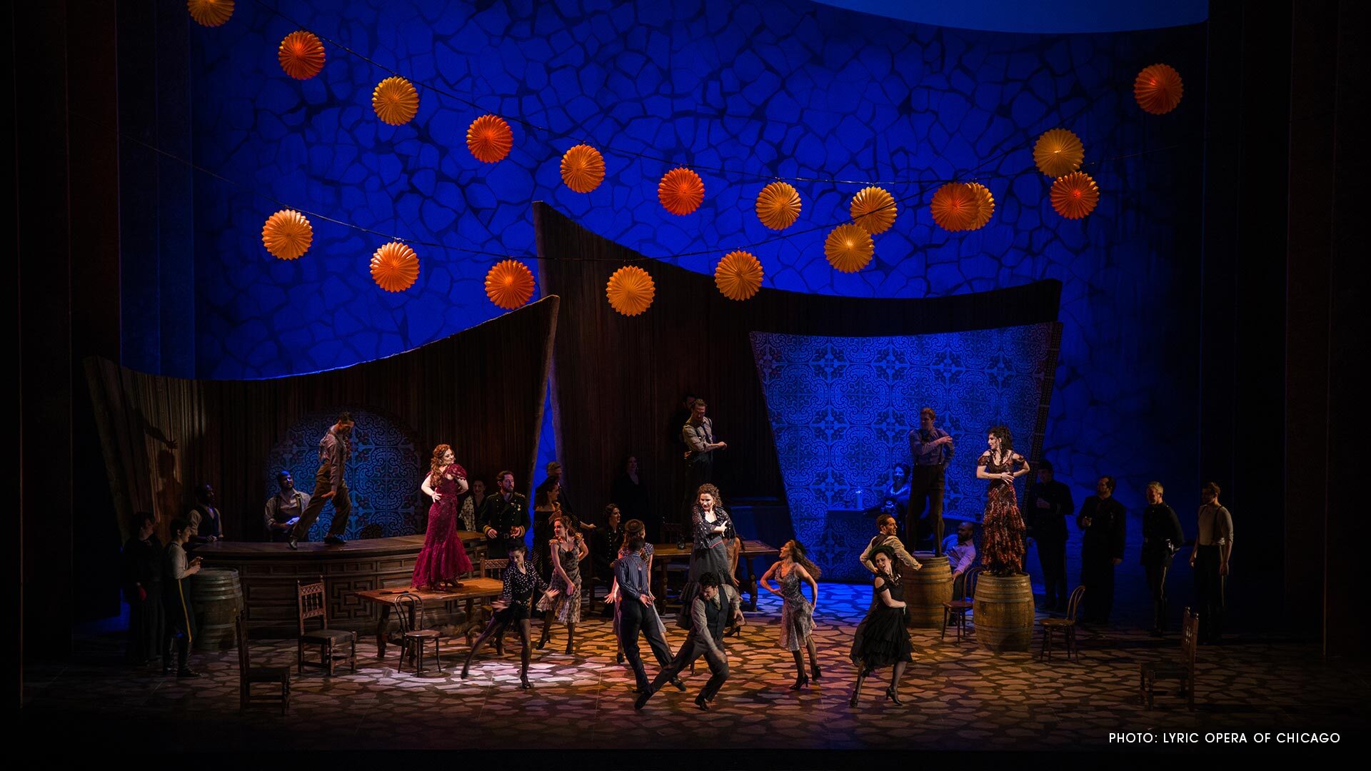While we await the day you can join us at the Lyric Opera House for a live performance, you can show off your Lyric love with a custom Zoom background. Whether you want to have a drink with Carmen at Lillas Pastia's Inn, face a larger-than-life dragon with Siegfried, or be the star of your own opera on the Ken Pigott Stage, scroll down to find the perfect background for your next meeting or family gathering.