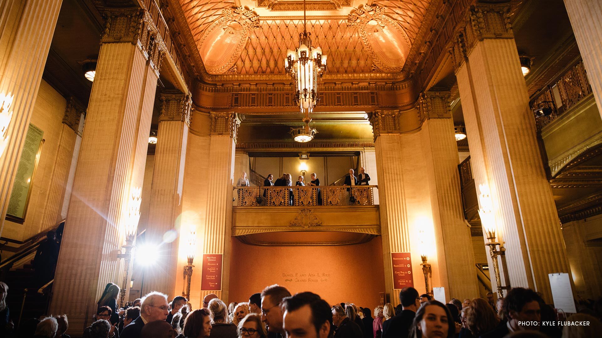 Until we can welcome you back into the house, you can virtually spend time in the golden glow of the Rice Grand Foyer.