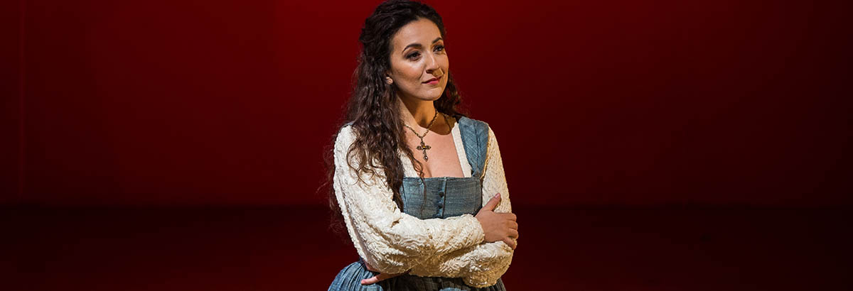 In this scene Gilda (Rosa Feola), Rigoletto's naive, virginal daughter, dreamily muses on the name of the man with whom she is in love, unaware that it is a false name and that he is not who he pretends to be.