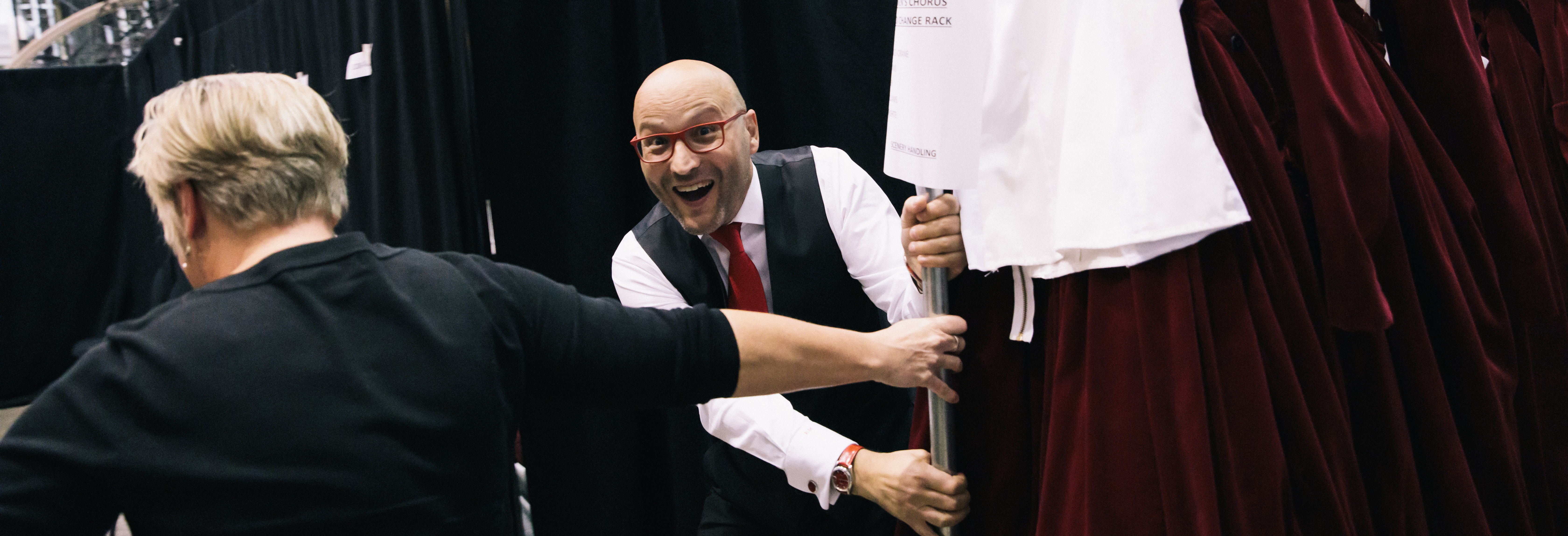 Maestro Mazzola doesn't want to miss the wedding of Elvira and Arturo. Can you spot him in this photo from Bellini's i Puritani?