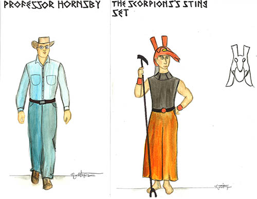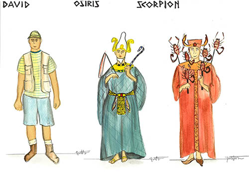 Costume Renderings for David Sands, Osiris, and Scorpion