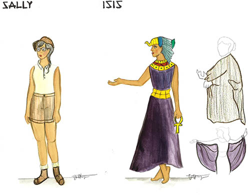 Costume Renderings for Sally and Isis