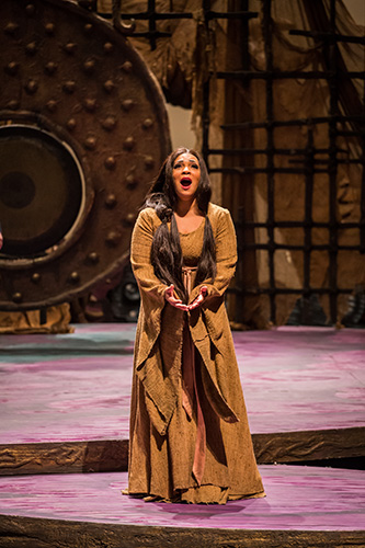 Ilia’s father has been defeated by the Cretans in the Trojan War. “She’s lost her home and family, she’s a prisoner, and she happens to be in love” with her enemy and captor, Prince Idamante, son of King Idomeneo, Janai notes. “Ilia is extremely distraught and conflicted at the beginning. You find out through the rest of the opera how she deals with that struggle. At the very end she does something quite amazing, and shows that she is a strong, gracious, selfless individual full of love, full of hope, full of passion – very noble, very wise, and able to forgive.”