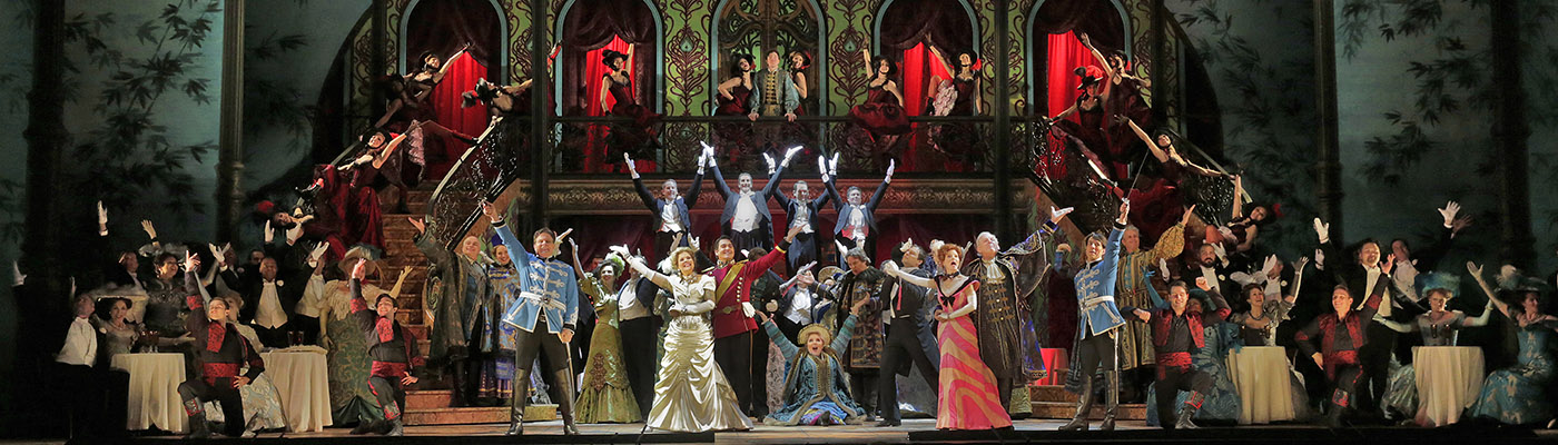 Stroman first directed and choreographed this lavish and lively production for the Metropolitan Opera, where it premiered last New Year’s Eve, starring Renée Fleming in the title role and conducted by Lyric’s own Sir Andrew Davis. It was a big debut for the ladies; Stroman had never directed in an opera house and Fleming hadn’t portrayed Hanna Glawari in a fully staged production. (Sir Andrew has conducted the operetta once previously.)