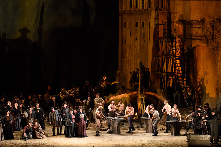 Onstage anvil-hammering in opera’s most rousing chorus — go on, we dare you not to grin when the bare-chested actors in Verdi’s Il trovatore start swinging their mighty hammers.