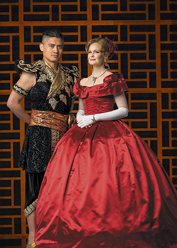 The gorgeous garments arrived in December by shipping container from Paris, where they made their debut at the Théâtre du Châtelet in 2014. Lyric’s costume director Maureen Reilly and wardrobe supervisor Lucy Lindquist and their staff then “inventoried and measured and organized for everyone. The designer’s assistant came from France and helped us source fabric for some new costumes. We have a different number of people than were in the Paris production, and different sizes, and some understudies who are also in the cast.” (The two have worked together for years and finish each other’s sentences, so they both get credit for these comments!) New costumes for the two boys — Anna’s son and the prince — were made in Wisconsin by Kitty Schweitzer and her Seams Unlimited team, along with pieces for Captain Orton, the interpreter, and Lady Thiang, who needed a remake of everything.