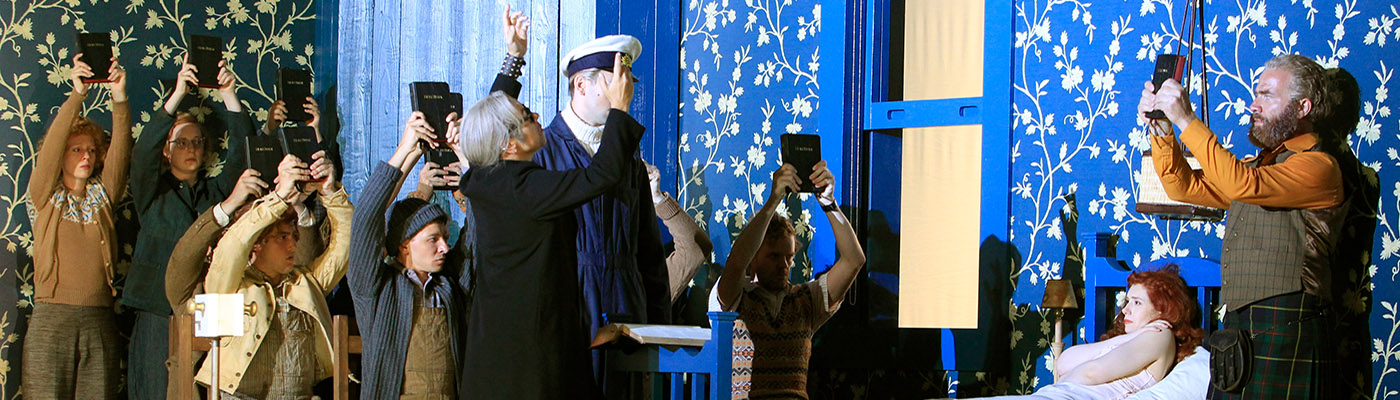 Richard Jones’s production moves the story from medieval times to an isolated, religiously fundamentalist Scottish island in the 1970s. Polinesso is a creepy grifter who penetrates this closed community in preacher’s clothes (possibly having done away with a mainland preacher legitimately summoned by the king), wreaking terrible havoc on several relationships and the fabric of the village itself through acts of sexual abuse and manipulation. In the end, Ginevra leaves rather than reconciling with the fiancé, father, and community who condemned her to death on false charges of infidelity.