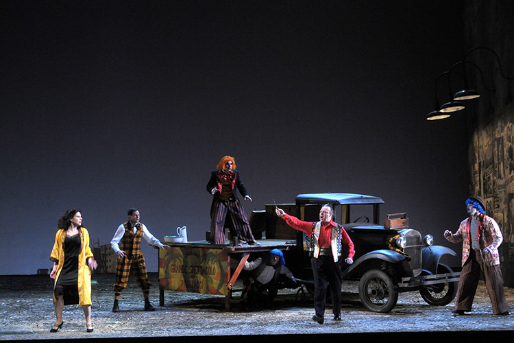 In Pagliacci (“Clowns”), two romantic triangles set a ragtag commedia dell’arte troupe on edge. Tonio is a brooding clown besotted with Nedda, who is married to Canio, the fiercely jealous head of the troupe. Nedda rejects Tonio’s advances and plots to run away with her secret lover, a townie named Silvo. After Tonio overhears their plans, the play within a play about a cuckolded husband becomes shatteringly real.