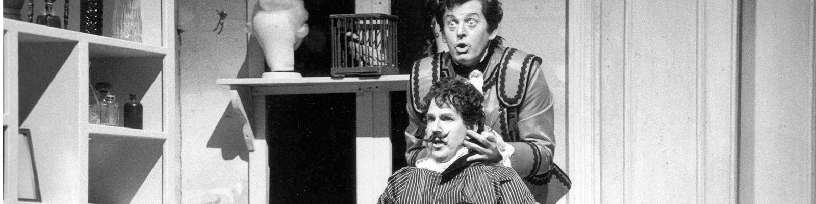 Rockwell Blake (Almaviva) and Sir Thomas Allen (Figaro) in Il barbiere di Siviglia. c Dan Rest.