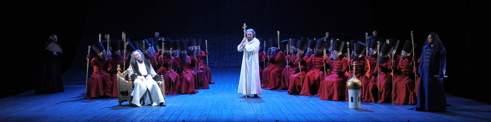Photo: Ferruccio Furlanetto (Boris Godunov) and Andrea Silvestrelli (Pimen) in Boris Godunov. c Dan Rest.