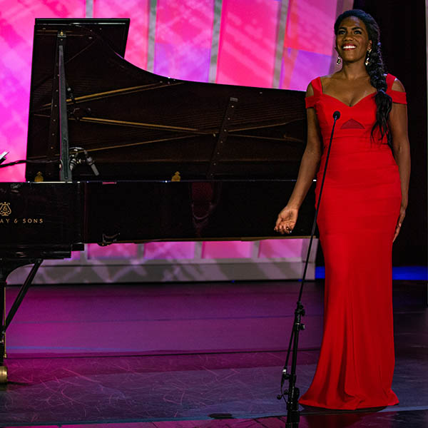 A Ryan Opera Center alumna, mezzo-soprano J’Nai Bridges has recently performed the leading roles of Nefertiti/Akhnaten (the Metropolitan Opera), Dalila/Samson et Dalila (Washington National Opera), and Federica/Luisa Miller (Gran Teatre del Liceu). She also recently sang with Gustavo Dudamel and the Los Angeles Philharmonic at “Global Goal: Unite for Our Future,” a globally televised and streamed concert; was featured in the Grant Park Music Festival’s 2020 virtual season; and collaborated with Los Angeles Opera in leading a Zoom panel discussion on racial inequality in opera, which included colleagues Lawrence Brownlee, Julia Bullock, Morris Robinson, Karen Slack, and Russell Thomas. Among Bridges’s scheduled prestigious engagements later this season are the title role/Carmen at the Canadian Opera Company and Giovanna Seymour/Anna Bolena at Amsterdam’s De Nationale Opera. An accomplished concert soloist, she has been featured in Mahler’s Symphony No. 2 “Resurrection” with the Louisville Orchestra, in Beethoven’s Symphony No. 9 with the Philadelphia Orchestra, and the “Farewell to Christoph Eschenbach” concert with the National Symphony Orchestra at the Kennedy Center. She created the pivotal role of Carmen in the 2015/16 world premiere of Bel Canto by Jimmy López and Nilo Cruz at Lyric (2017 PBS telecast), and has been acclaimed in the title role/The Rape of Lucretia at Wolf Trap Opera, Sister Helen Prejean/Dead Man Walking at Vancouver Opera, and Bersi/Andrea Chénier, at, among others, San Francisco Opera and Bayerische Staatsoper.