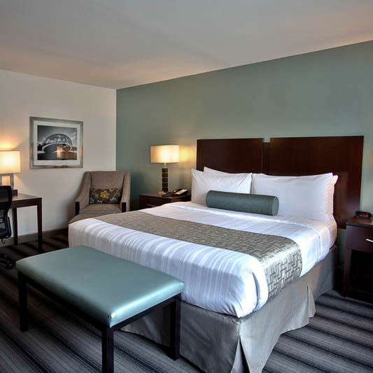 Rates include high speed WiFi throughout the property, access to a 24/7 fitness center, a full-service bar, and an indoor heated pool. Every guest room includes a Cozy Corner sofa sleeper, complimentary coffee, a 42" HDTV, and mini refrigerator.